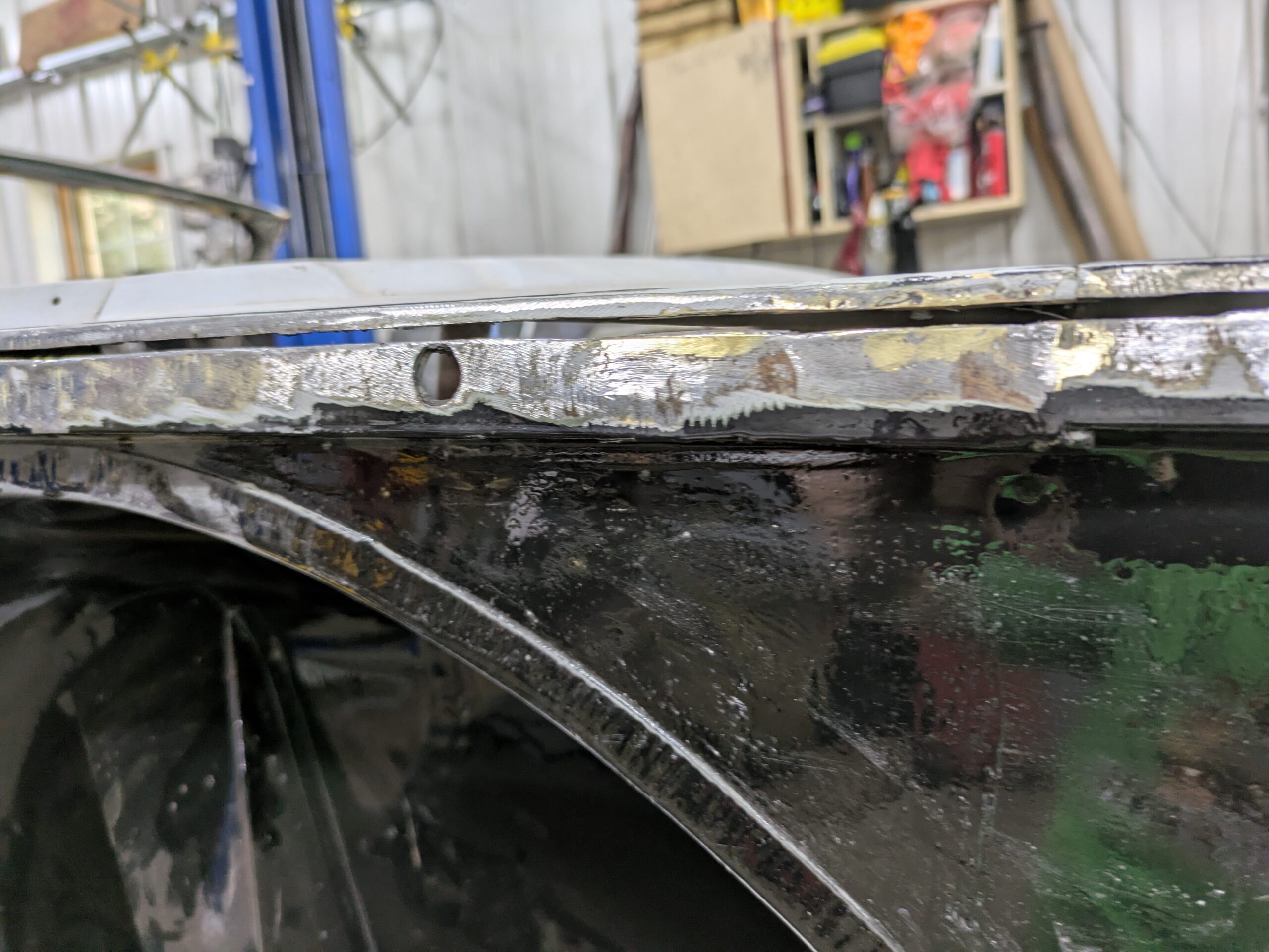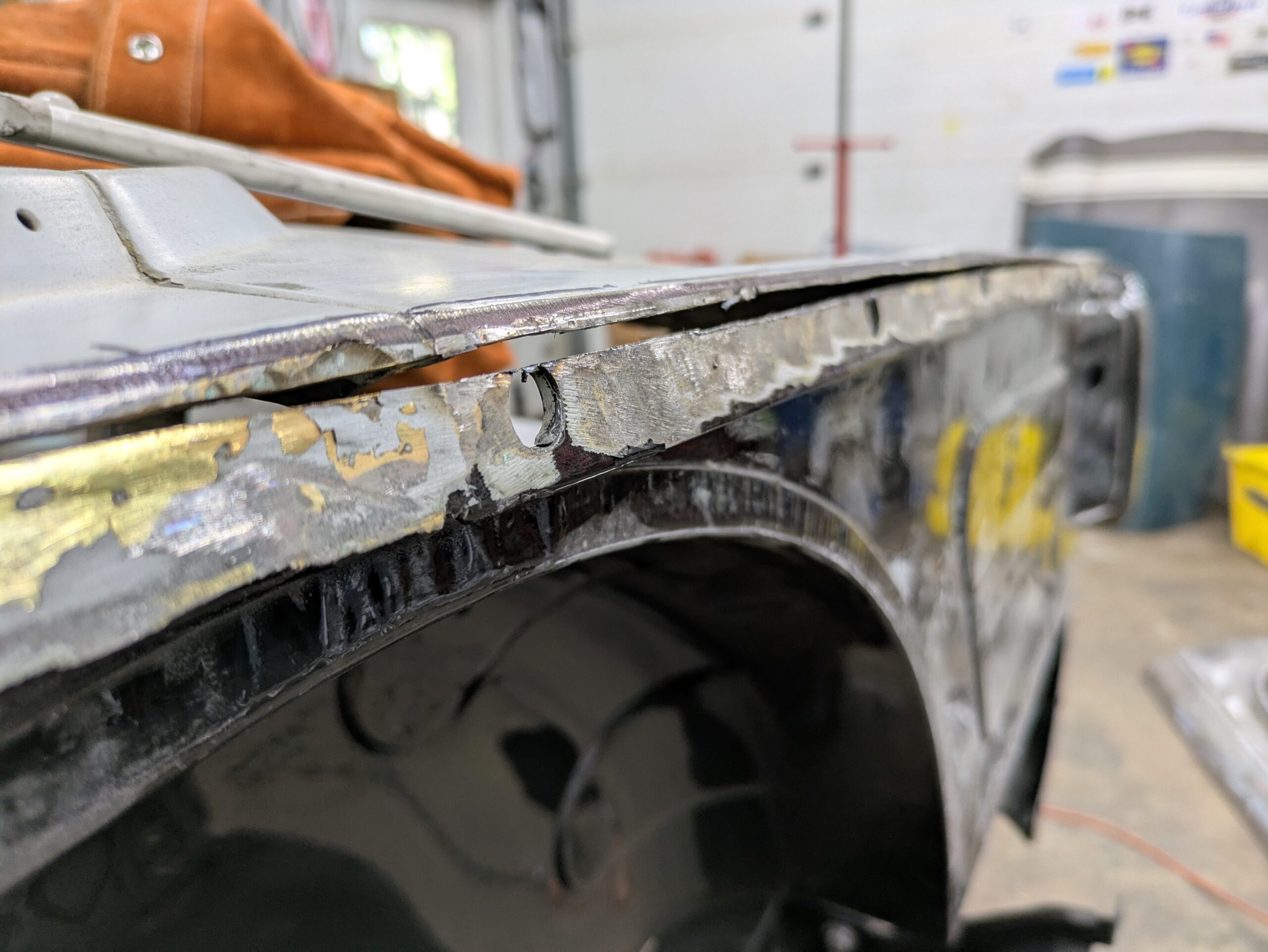 A week passed, and I pulled another drivers side rear fender out of storage. I offered that fender up to the car and it does line up for a proper door gap. The inner fender issue is the same, but at least this fender proves the tub is not the problem with the fender not aligning front to rear, it is the fender I was using.