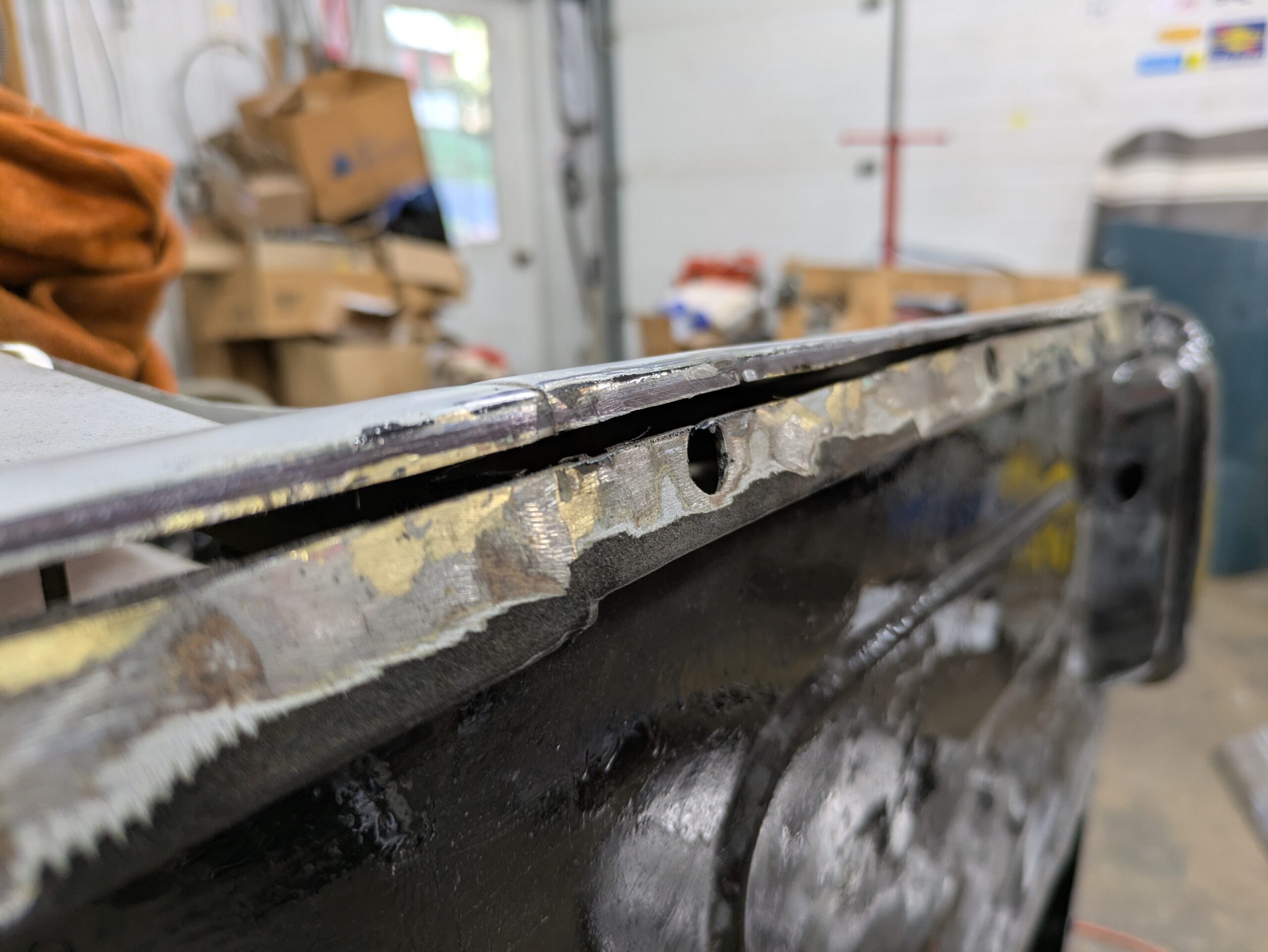 Another item of note, if I ever am faced with something like this again, I now realize I should have made the cut at the centerline of the bolt holes. Working like this so close to the bent upper edge was a bit dodgy, and I do need to elongate the bolt holes a little anyway.
