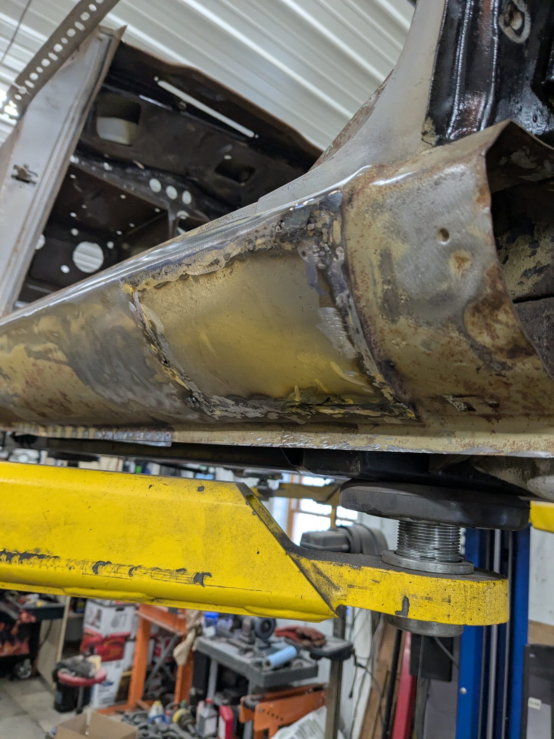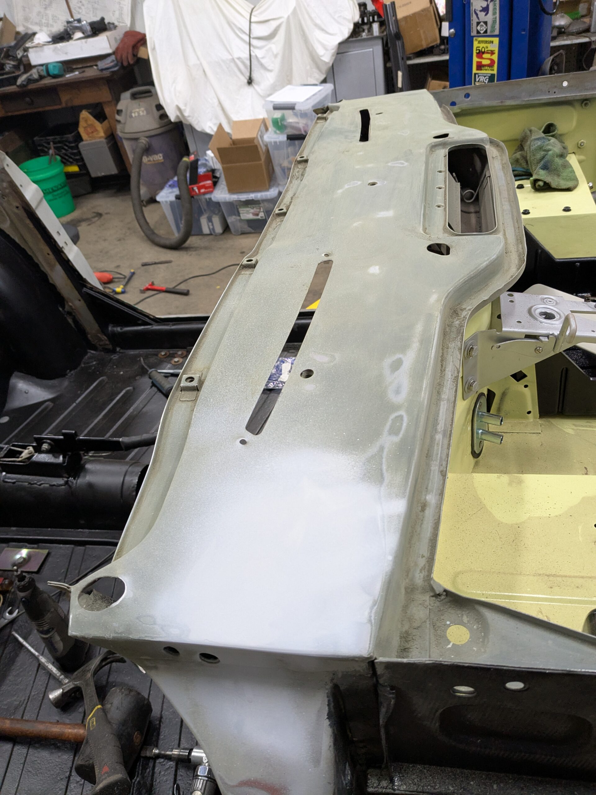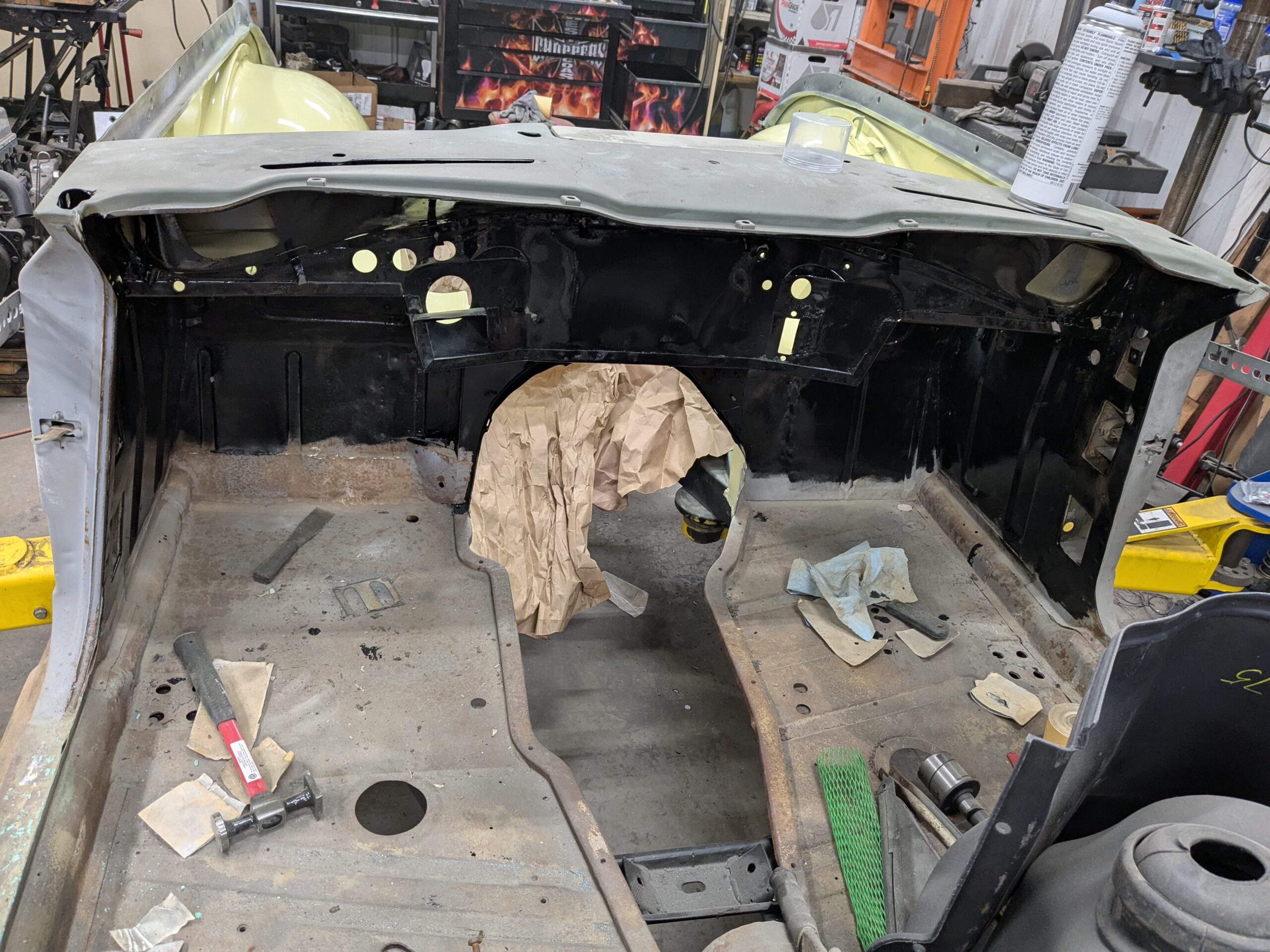 Getting the tub ready for paint – A couple of smallish holes in the sills, a little cleanup on a patch in the drivers footwell, should not be all the involved, right? Work done February-March, 2025.