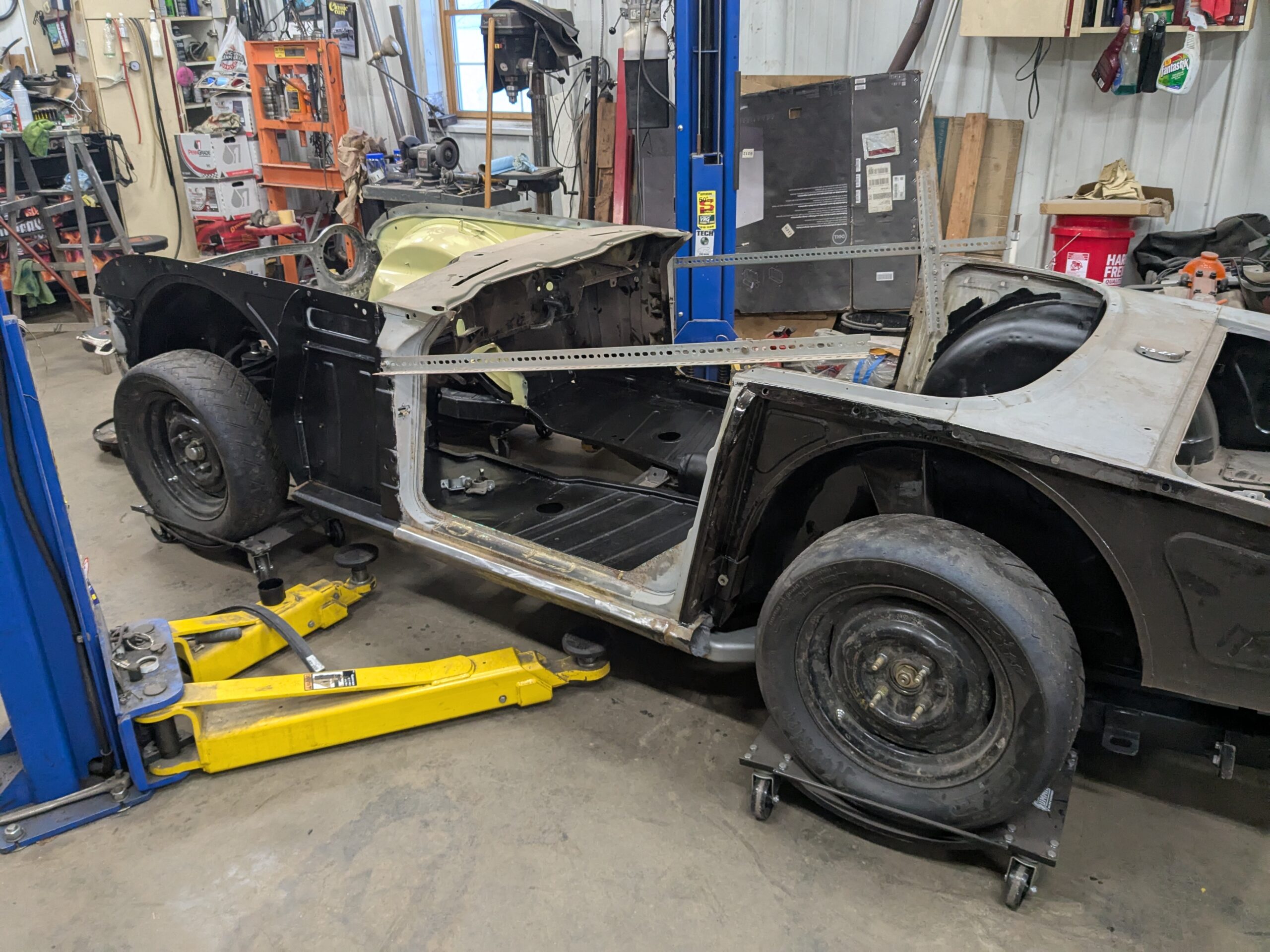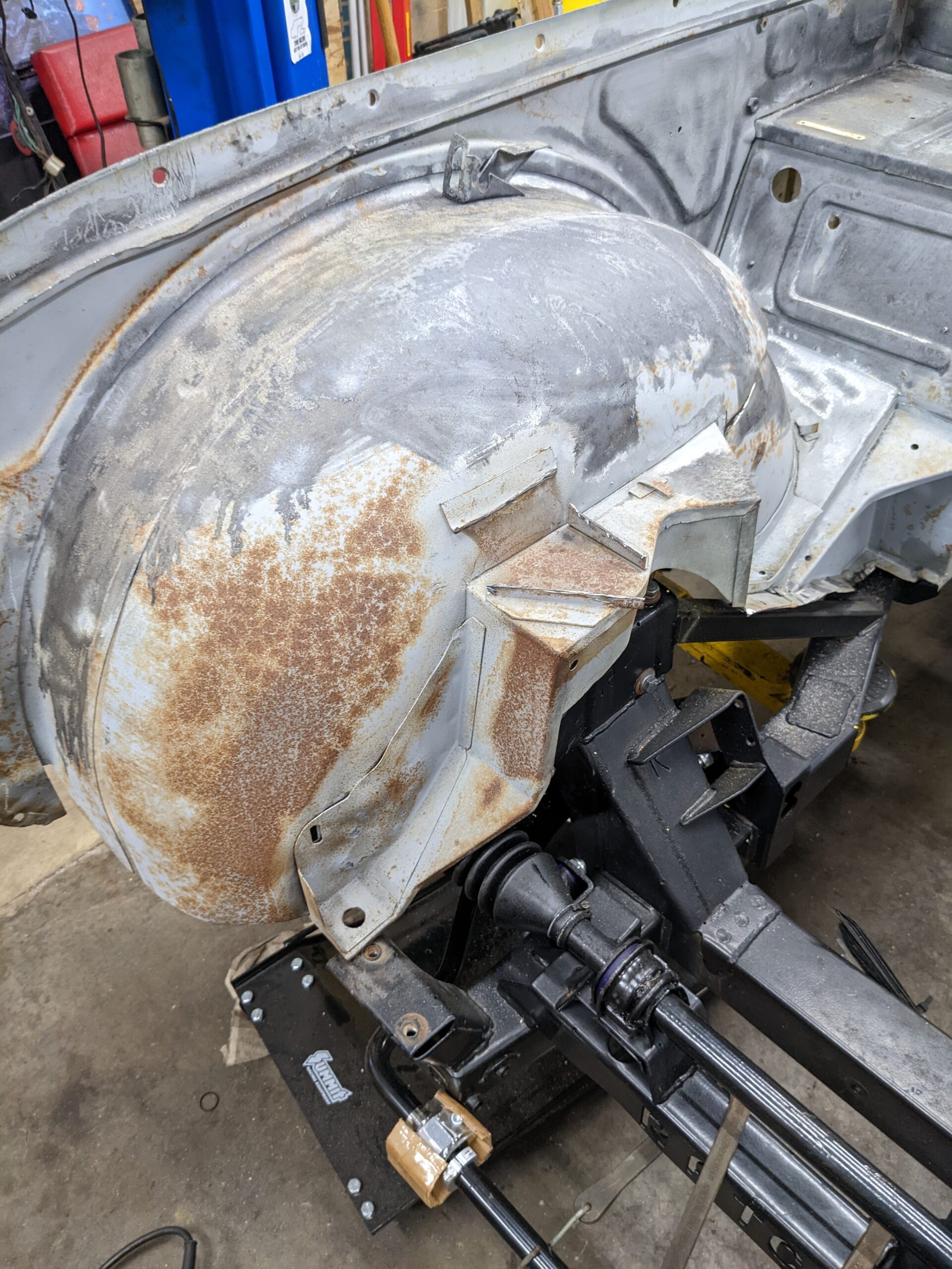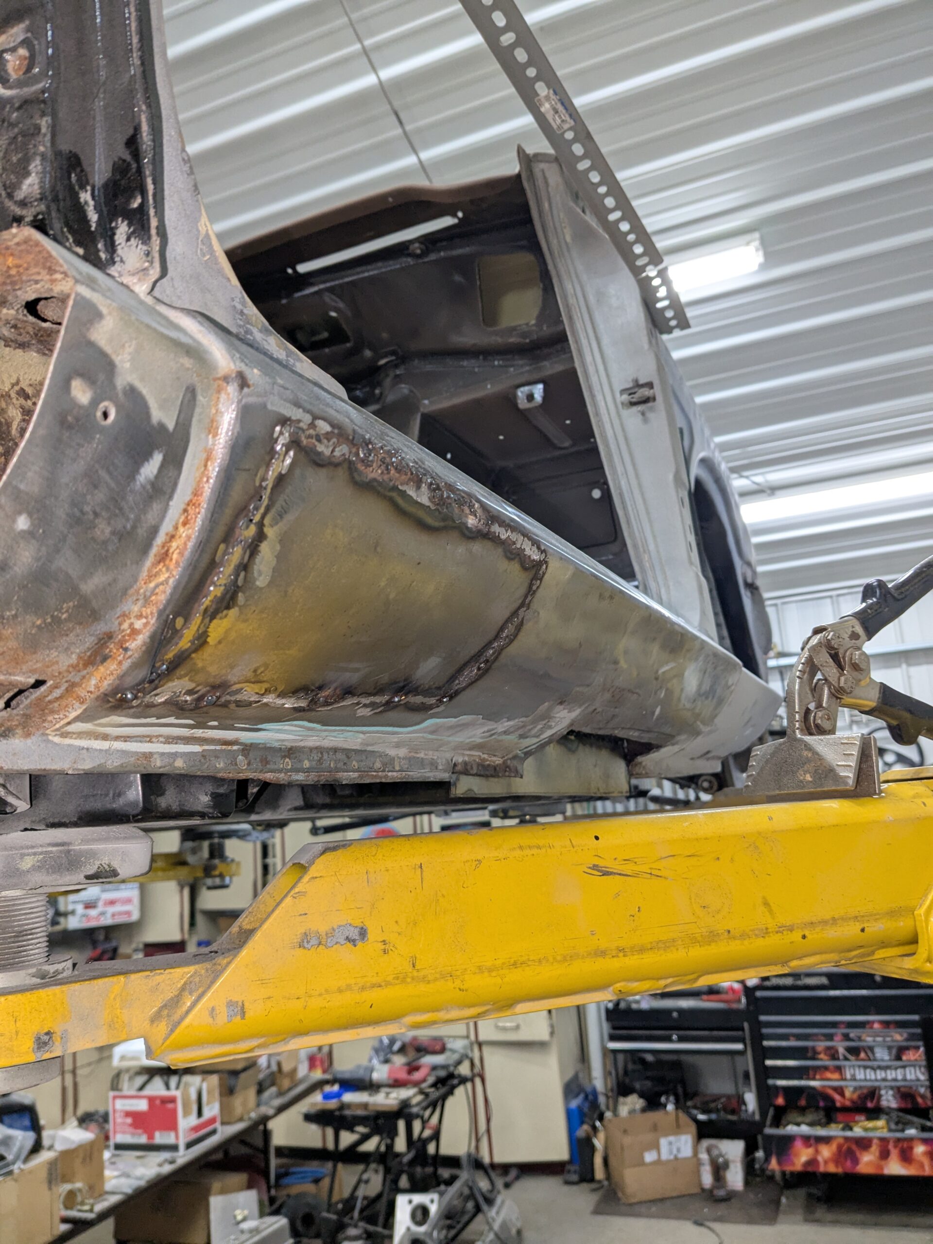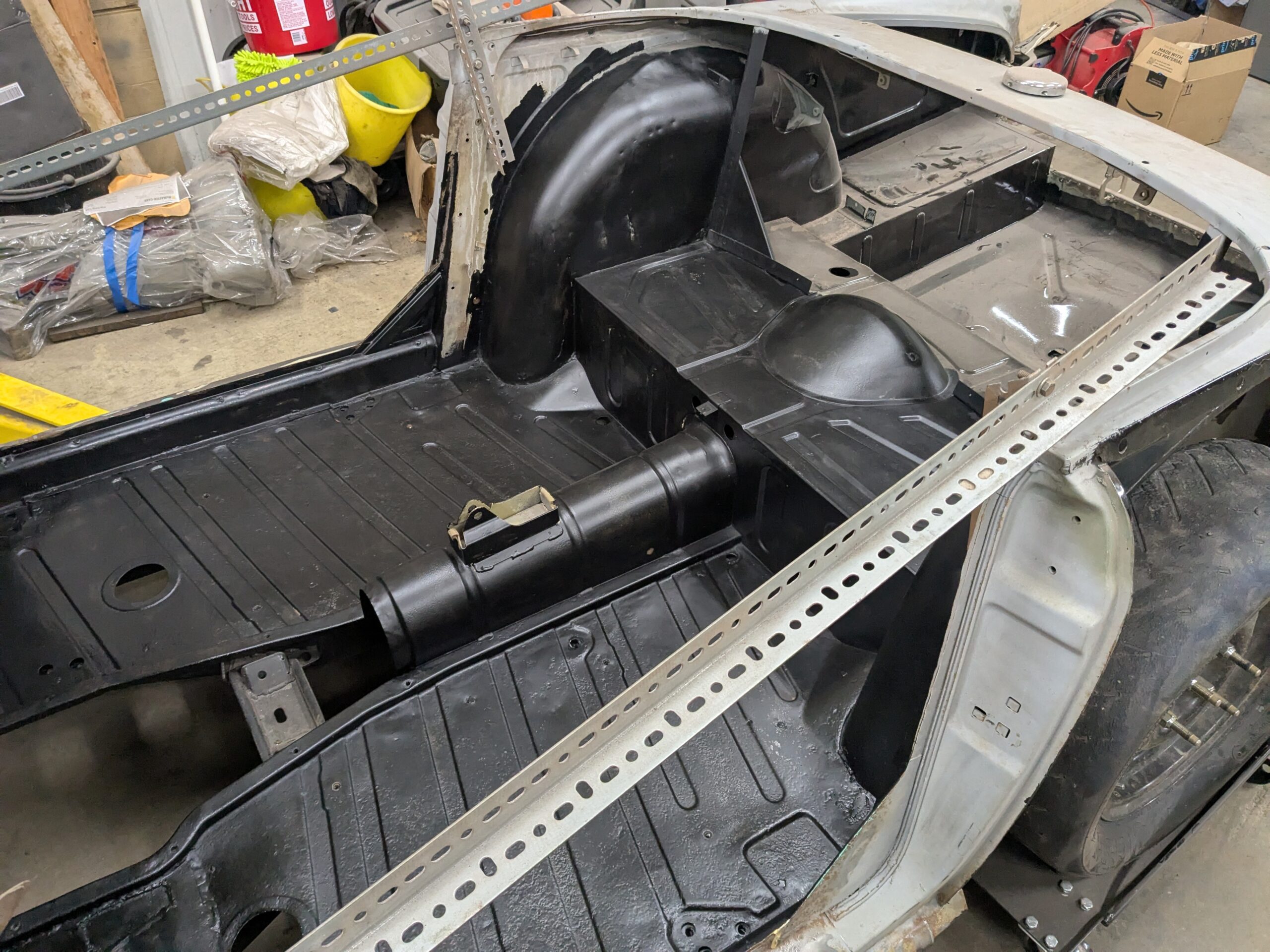 Getting the tub ready for paint – A couple of smallish holes in the sills, a little cleanup on a patch in the drivers footwell, should not be all the involved, right? Work done February-March, 2025.