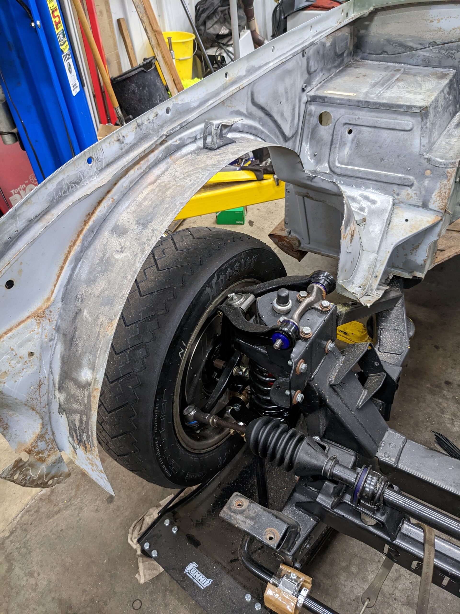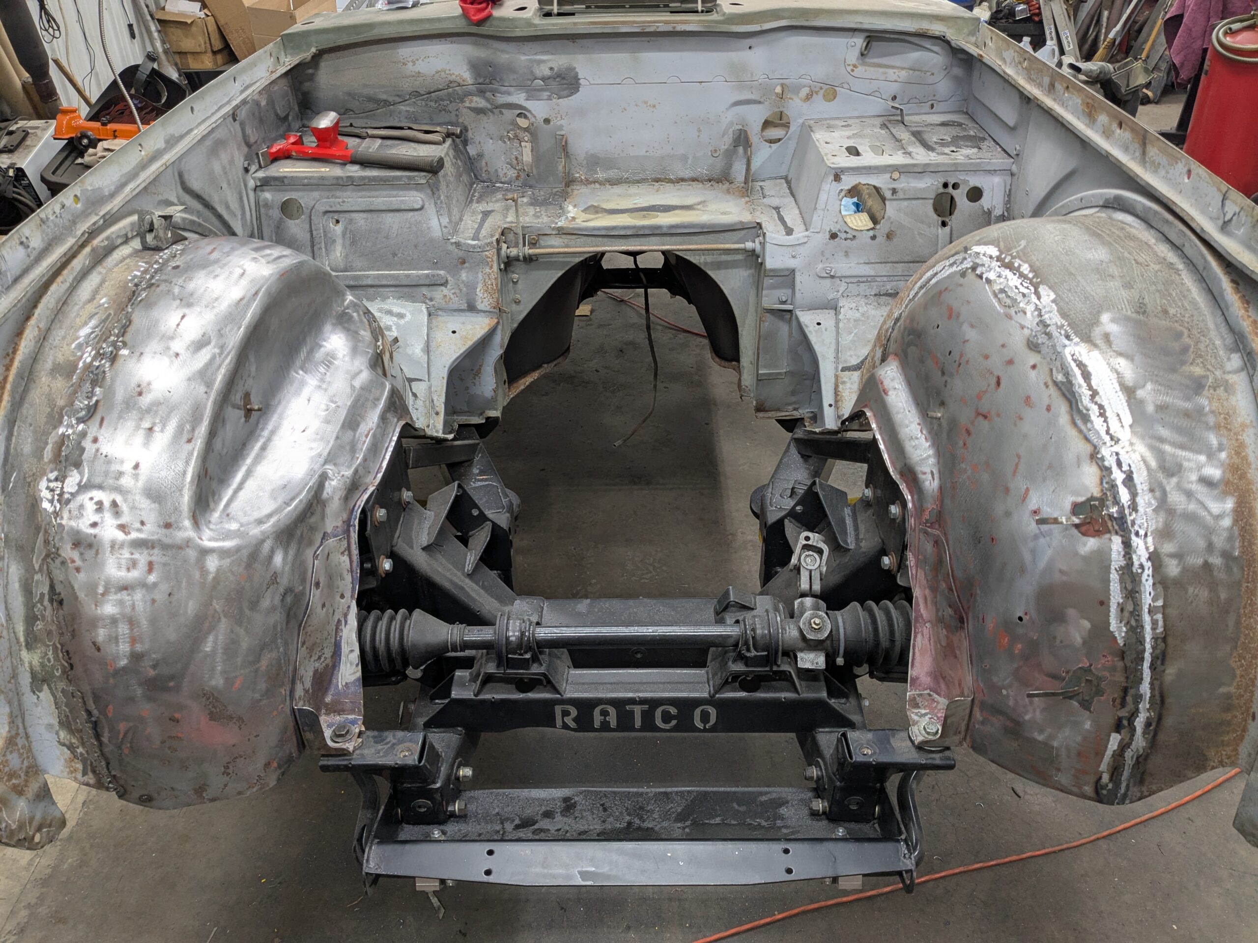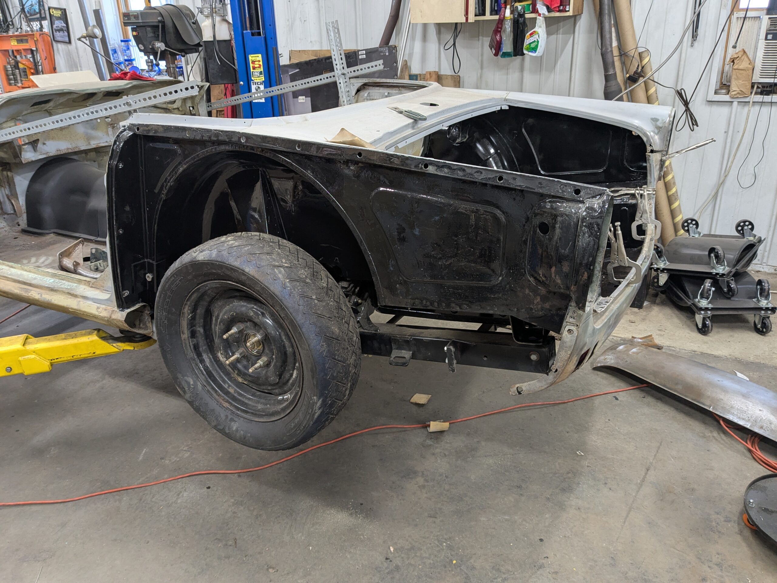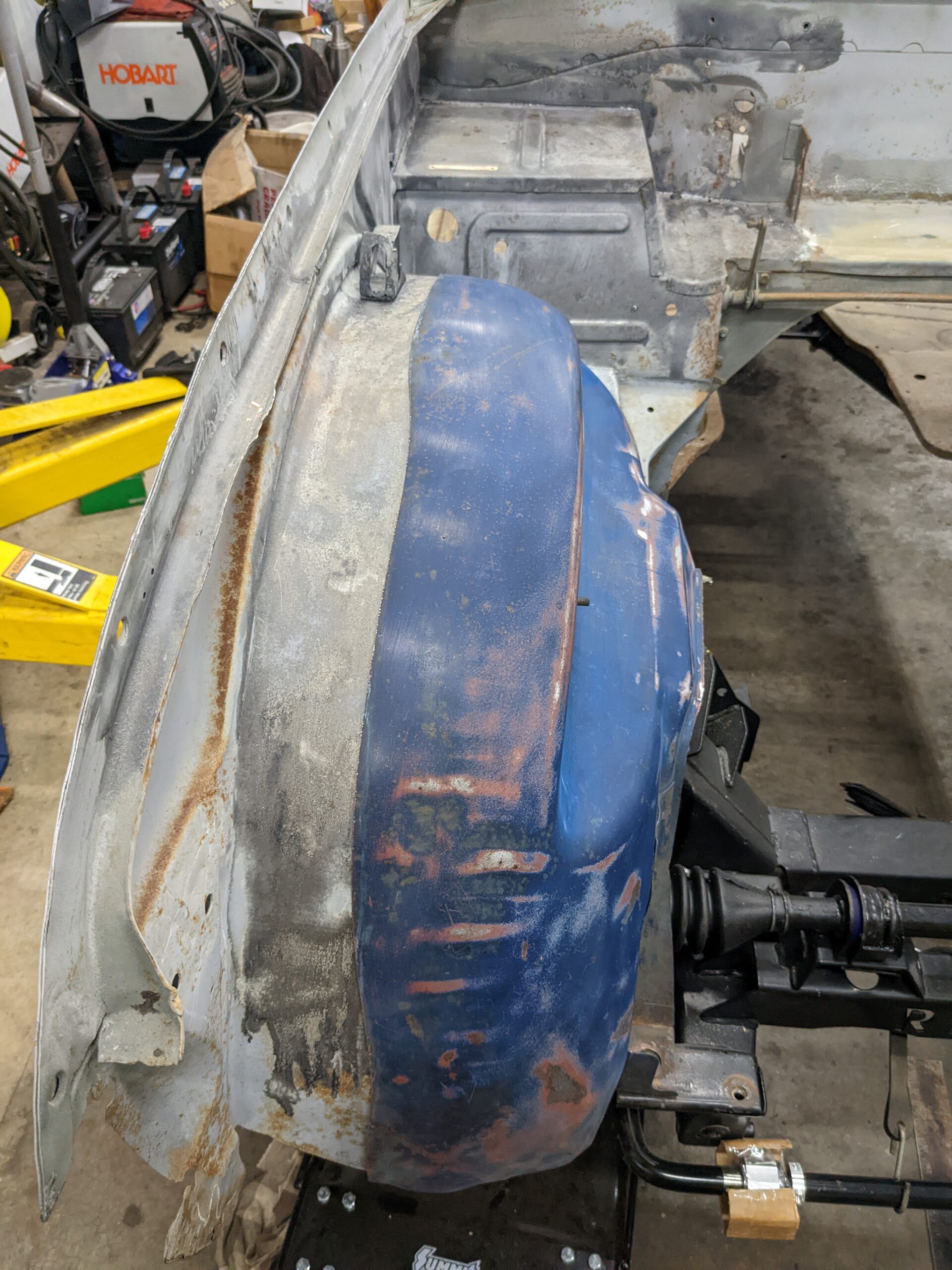 I decided it was time to test fit all 4 fenders and the doors, to see how the bits are going to line up. Turns out, not well at all. I question if the rear fenders I am working with are actual OEM, or used Heritage replacement fenders. I am thinking the latter.