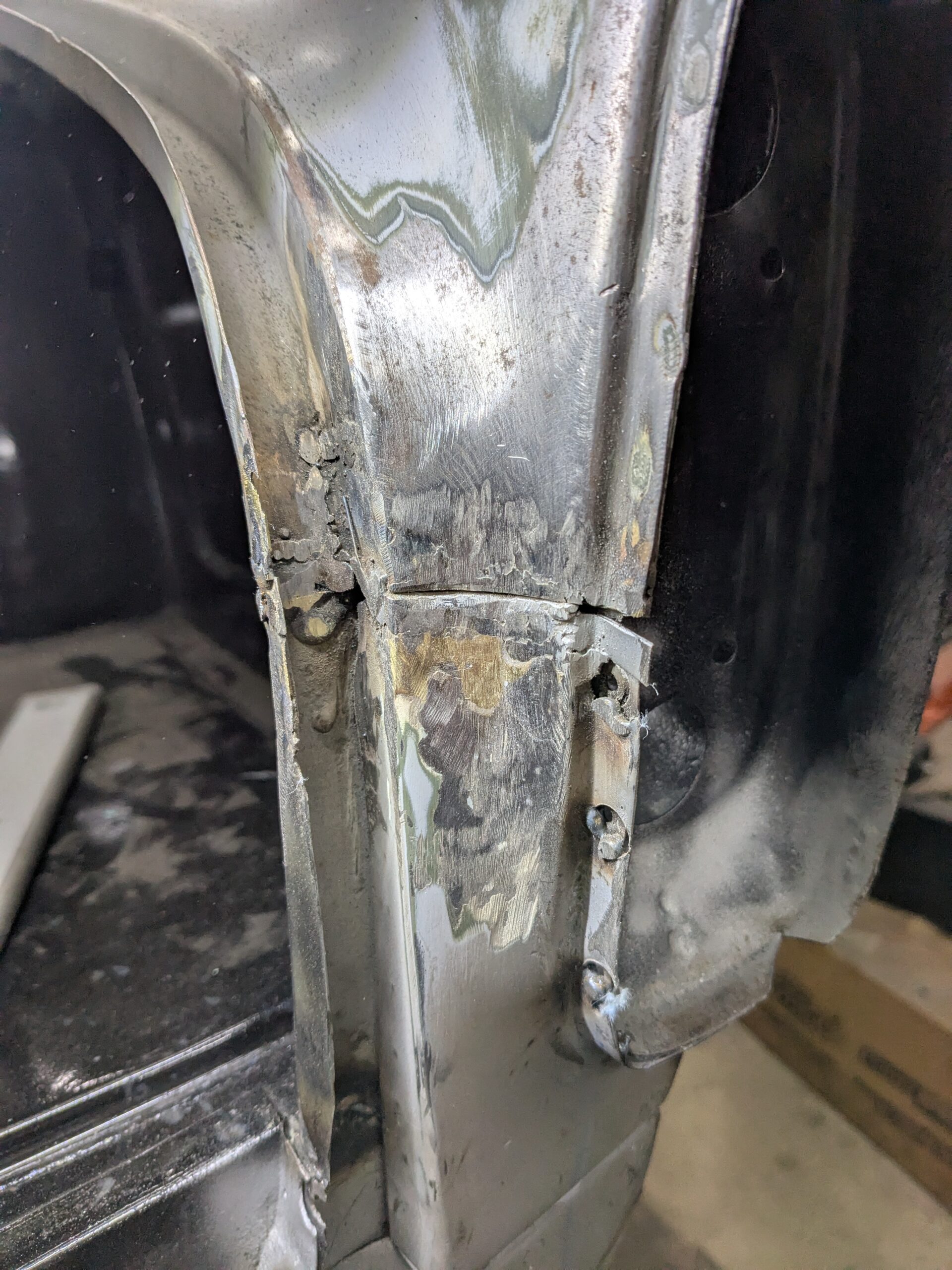 A week passed, and I pulled another drivers side rear fender out of storage. I offered that fender up to the car and it does line up for a proper door gap. The inner fender issue is the same, but at least this fender proves the tub is not the problem with the fender not aligning front to rear, it is the fender I was using.